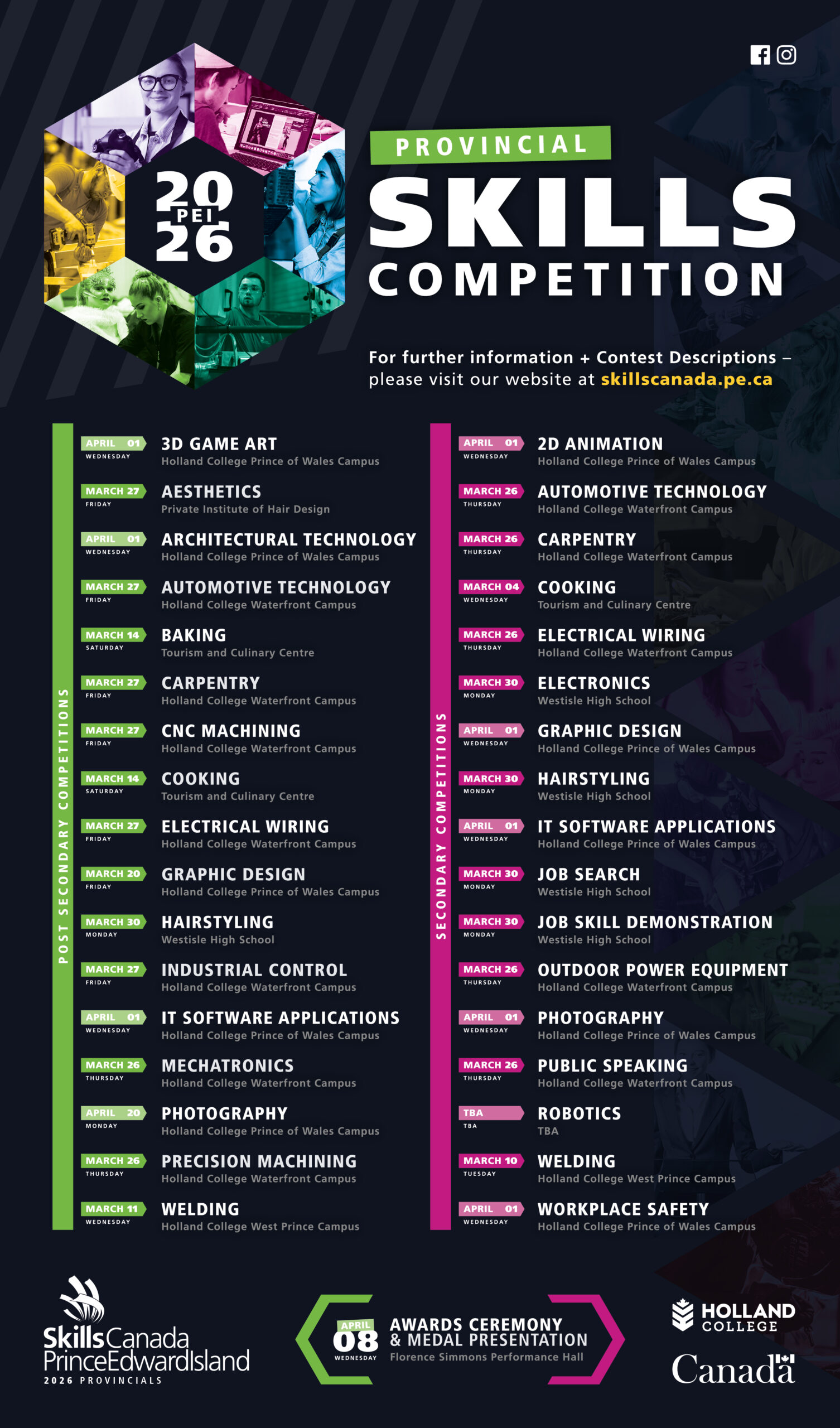 View the full 2026 Provincial Skills Competition Schedule for Prince Edward Island. To the right shows our full schedule, with dates and locations for our 2026 Skills Competition on PEI for both...